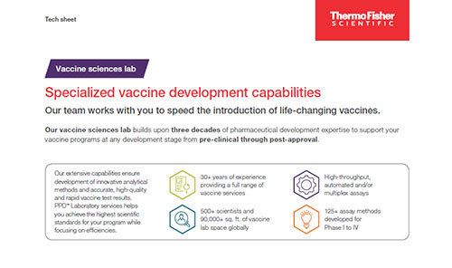 Our extensive capabilities ensure development of innovative analytical methods and accurate, high-quality and rapid vaccine test results. The PPD™ clinical research business of Thermo Fisher Scientific helps you achieve the highest scientific standards for your program while focusing on efficiencies.