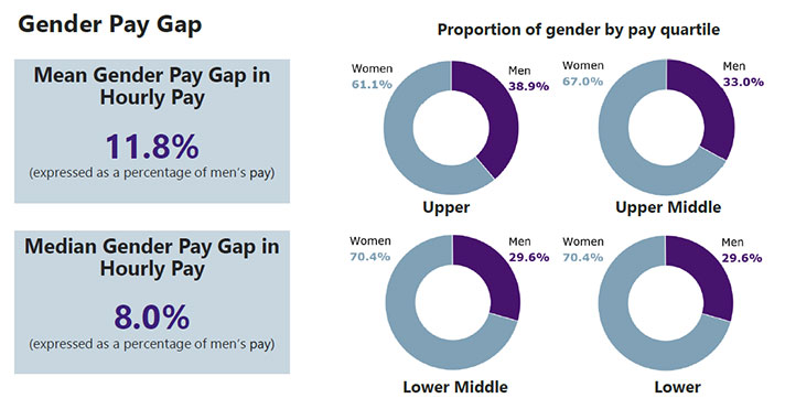 As with the previous reports, it’s important to note that a gender pay gap is not the same as equal pay. Equal Pay is the concept of paying men and women equally for equivalent work. A gender pay gap report is not a pay audit and does not report on equal pay as it does not compare pay between men and women for specific roles.